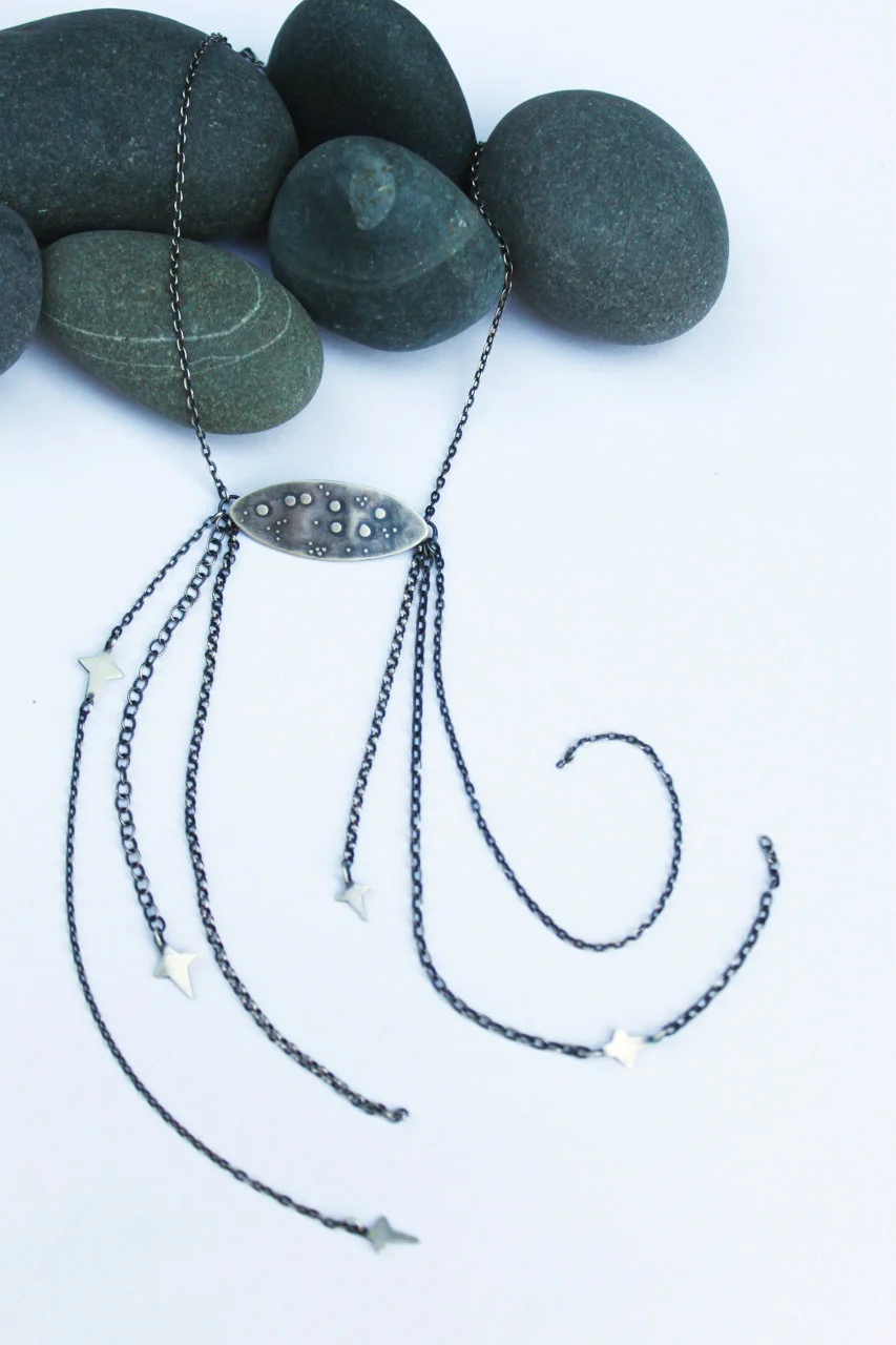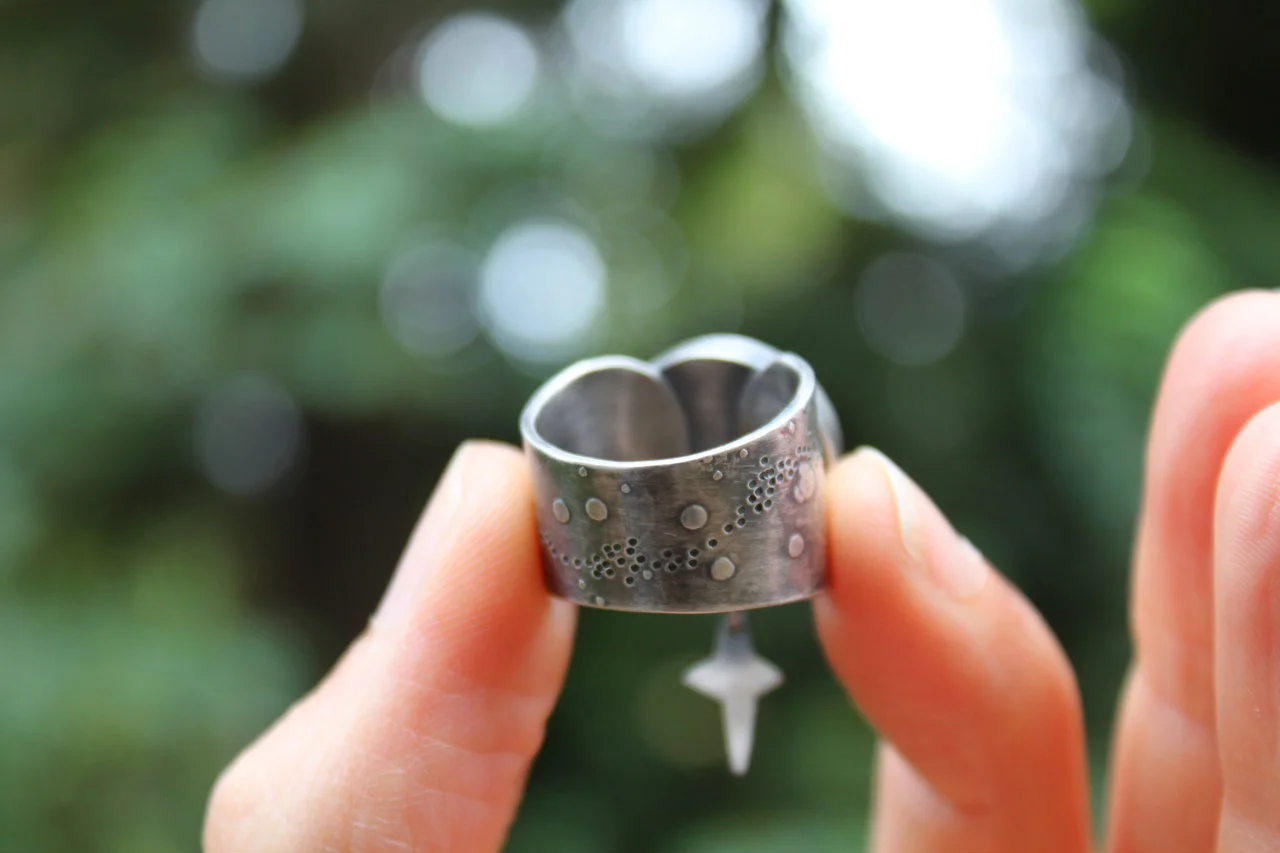 I think to myself, if we hold the same elements as the stars, the same bits of carbon and iron and oxygen, then so does everything else we touch on this earth. Even this silver, that I weave into story and tribute, contains actual stardust. And that, I tell myself, must be why it glows.